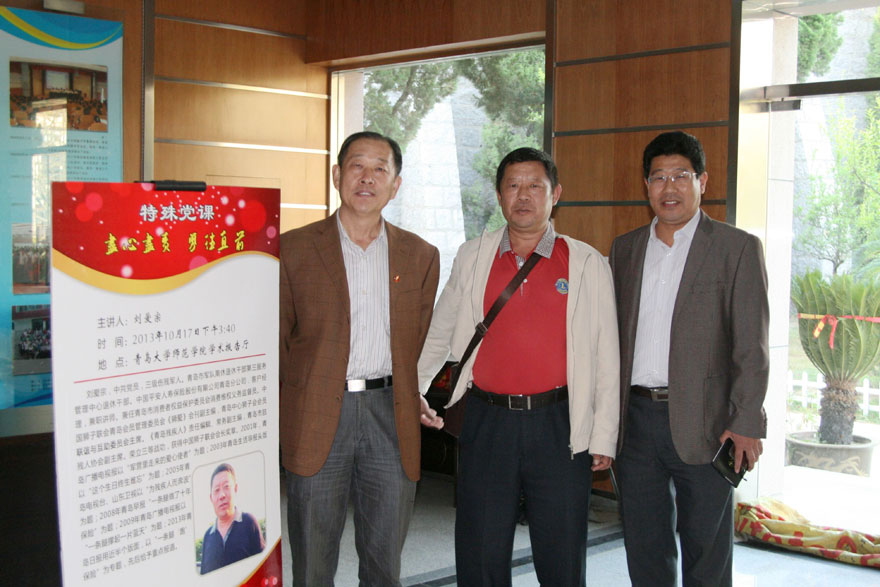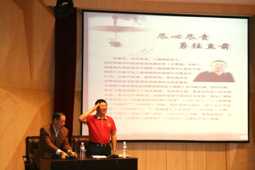 刘爱宗校友——中共党员,三级伤残军人。原为驻即墨市坦克团政治处副主任(正营级,中校)。现青岛市军队离休退休干部第三服务管理中心退休干部。供职于中国平安人寿保险股份有限公司青岛分公司,任客户经理,兼职讲师。兼任青岛市消费者权益保护委员会消费维权义务监督员。中国狮子联会青岛会员管理委员会《狮爱》会刊副主编,青岛中心狮子会会员联谊与互助委员会主席。曾任《青岛残疾人》责任编辑、常务副主编,青岛市肢残人协会副主席。荣立三等战功,获得中国狮子联会会长奖章。2000年,青岛广播电视报以“军营里走来的爱心使者”为题,2001年青岛生活导报头版以“这个生日终生难忘”为题,2005年青岛电视台、山东卫视以“为残疾人而奔波”为题,2008年青岛早报“一条腿做了十年保险”为题,2009年青岛广播电视报以近一个整版、“一条腿撑起一片蓝天”为题,2013年3月1日,青岛日报在要闻版,用近半个版面,以“一条腿 ‘跑’保险”为题,给予重点报道。