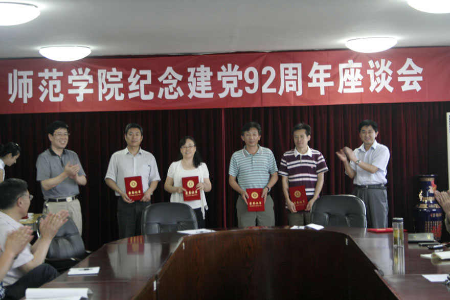 7月1日,我院在办公楼三楼会议室召开庆祝中国共产党成立92周年座谈会,师范学院副书记陈红军、副书记李善惠,各党总支书记及获奖代表参加了座谈会。座谈会由李善惠副书记主持。