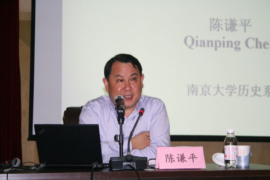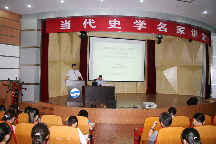 2013年6月26日下午,师范学院主办的“当代史学名家讲堂”邀请国务院学位委员会历史学科评议组成员、中国现代史学会副会长、著名民国史专家、南京大学历史系主任陈谦平教授作题为“辛亥革命与中国的社会转型”的学术报告。校长助理、师范学院常务副院长钱国旗教授主持报告会,师范学院文科各系师生、青岛大学浮山书院博雅班部分师生、青岛市名师培养工程历史学科人选以及青岛市历史学会部分会员,参加了本次报告会。