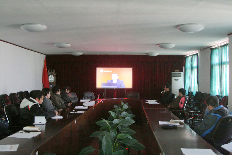12月12日下午,我院在办公楼三楼会议室集中观看学习“坚定不移地走中国特色社会主义道路”十八大理论辅导光盘。院领导及党委中心组全体成员参加会议。