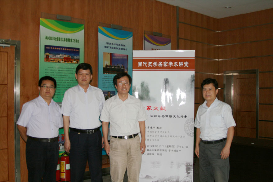9月13日下午,中国社会史学会会长,南开大学中国社会史研究中心主任,博士生导师常建华教授应邀来我院“当代史学名家学术讲堂”作了题为《故家文献:宋以后的宗族文化传承》的学术报告。报告会由青岛大学校长助理、师范学院常务副院长钱国旗主持,我院部分教师及学生约300人参加了报告会。
