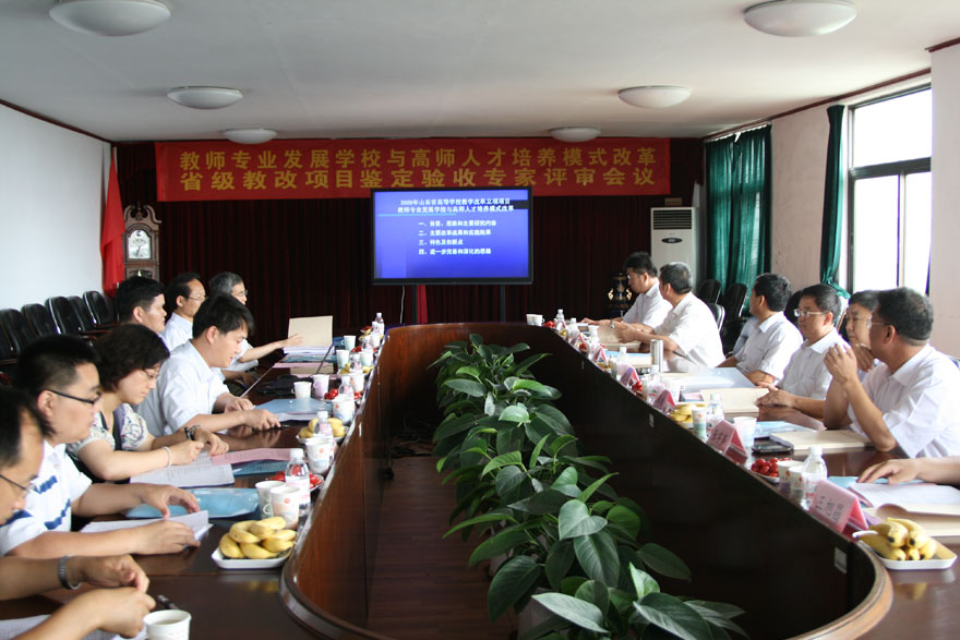 2012年7月20日,师范学院钱国旗教授主持的2009年山东省高等学校教学改革立项项目“教师专业发展学校与高师人才培养模式改革”结项验收和成果鉴定专家评审会在师院行政楼三楼会议室举行,鉴定验收委员会由德州学院院长贺金玉教授、泰山学院院长王庆功教授、山东师范大学副校长于涛教授、山东理工大学副校长张宇声教授、青岛市教育科学研究所原所长翟广顺研究员、青岛市普通教育教学研究室王旭昌主任、青岛大学教务处处长于永明教授等七位专家组成,贺金玉教授担任专家组组长。