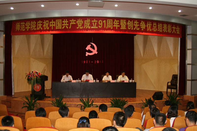 6月29日下午,我院庆祝中国共产党成立91周年暨创先争优总结表彰大会在学术报告厅举行。大会由青岛大学校长助理、师范学院常务副院长钱国旗主持,陈红军书记作了重要讲话,全院师生党员及部分入党积极分子近400人参加了大会。