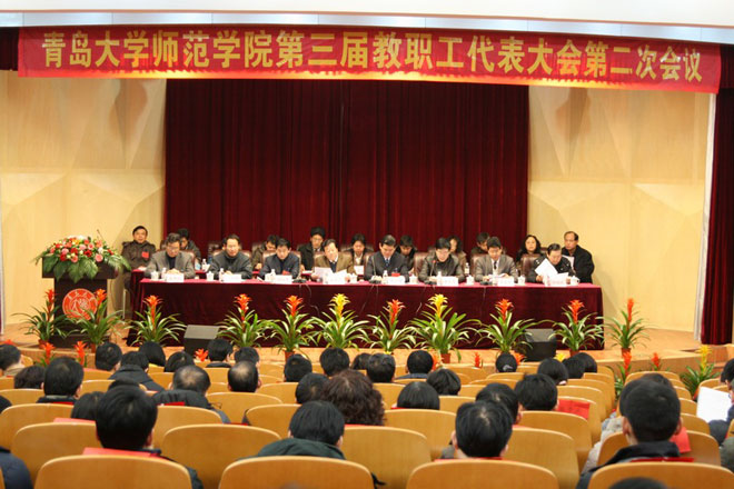 报告指出,2011年学院工作总的要求是:深入贯彻落实科学发展观,认真学习贯彻国家和山东省、青岛市中长期教育规划纲要,紧密结合青岛市基础教育改革发展的新要求,大力加强教学、科研、学科建设、服务地方、和谐校园建设等工作,在新的起点上全面推进教师教育改革发展,为“十二五”发展开好篇,起好步。2011年主要开展好九个方面的工作:一是深入学习贯彻教育规划纲要,积极谋划教师教育改革发展;二是实施“教学质量与教学改革工程”,不断提高人才培养质量;三是实施“学术提升与科研振兴计划”,不断提高科学研究水平;四是实施“学科品牌战略”加强特色优势学科建设;五是做好教师培训工作,增强社会服务能力;六是加强党建和思想政治工作;七是加强师资队伍建设;八是改善办学条件,提高管理效率;九是推进和谐校园建设。