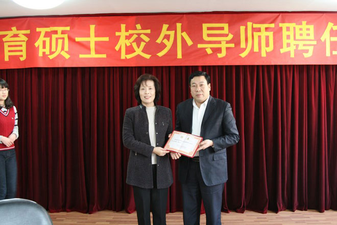 在聘任仪式上,青岛市政协副主席、青岛大学副校长邵峰晶为教育硕士校外导师颁发聘书并做重要讲话。邵校长代表校党委、校行政向受聘的13位教育硕士校外导师表示衷心的祝贺和热烈的欢迎,对青岛市教育局及来自基础教育一线的各位专家表示衷心的感谢!邵校长简要介绍了我校研究生工作的发展和现状,着重介绍了我院举办教育硕士专业学位教育的优势。最后,邵校长希望教育硕士校外导师充分发挥自身优势,共同携手打造“青岛大学教育硕士”品牌。青岛市教育局副局长张锡科在致辞中对受聘导师表示祝贺,并表示教育局全力支持教育硕士专业学位教育的发展。受聘导师代表青岛二中特级教师杨青松在致辞中对受聘为教育硕士导师感到非常荣幸,并表示一定会妥善处理好自身工作与指导研究生的关系,认真履行导师职责,为教育硕士专业学位教育事业的发展做出应有的贡献。