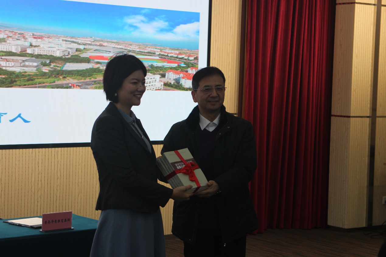 2021年12月26日,在青岛大学师范学院与青岛华青教育集团教师培训签约暨开班仪式上,马勇军教授代表青岛大学师范学院向全体学员赠送了他刚刚出版的学术专著《课程领导实践中的探索与思考》。这次赠书具有特殊意义,因为该书记录了马勇军在华青集团下属学校青岛大学附属中学教育教学改革的实践经历与理性思考。