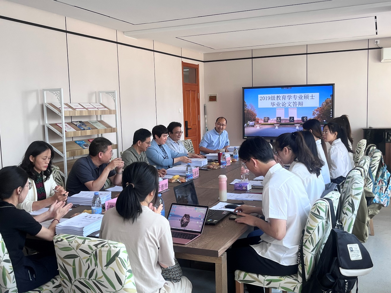 答辩会上,同学们从选题背景、研究思路、论文创新、未来工作等方面进行了陈述,答辩委员进行提问并提出修改建议。