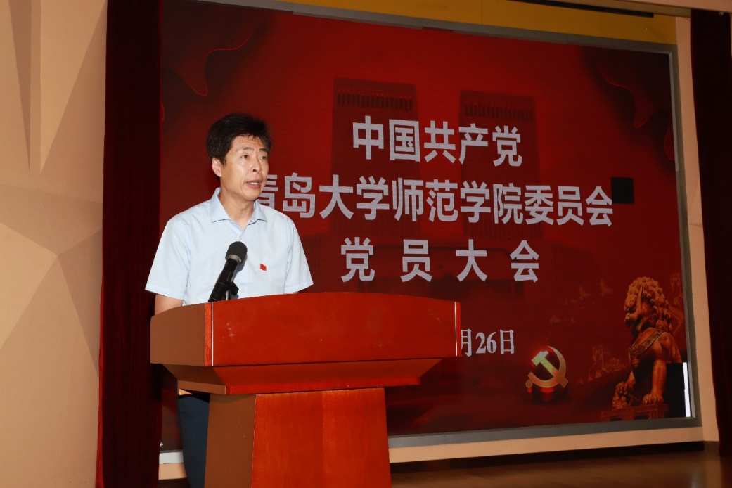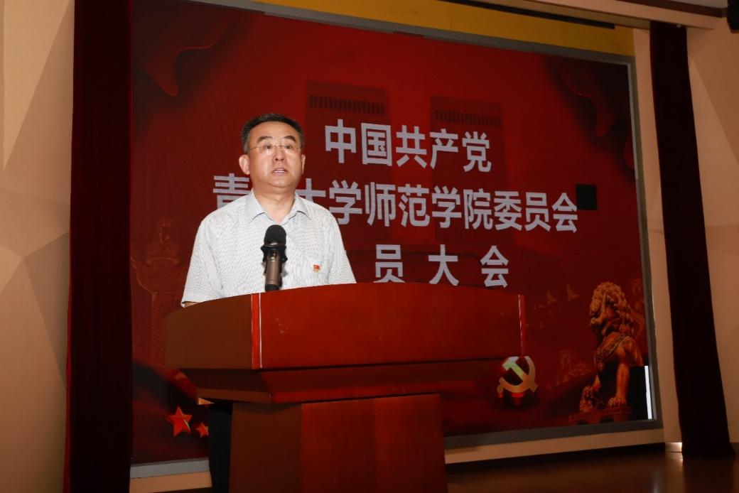 尹增刚代表上届委员会以《凝心聚力,踔厉奋发,内涵发展,建设国内有重要影响的高水平师范学院》为题向大会作报告,总结了“十三五”以来学院在党的建设、学科与专业建设、教学教研、科研与社会服务、师资队伍建设、人才培养工作等方面取得的成绩,指出了工作中存在的困难和问题,确定了学院“十四五”时期发展的指导思想、总体目标、发展思路,围绕“推进党建定向导航工程,落实基层党建工作主体责任”“推进综合改革创新引领工程,提高学院治理能力”“推进人才队伍支撑工程,提升师资队伍建设水平”“推进人才培养基础工程,全面提高人才培养质量”“推进科学研究提升工程,提高科研竞争能力”“推进学科建设重点工程,提升学科建设水平”“推进文化引领工程、资源优化工程,打造文化凝聚软实力和资源支撑硬实力”等七个方面,部署了“十四五”时期学院发展的重点任务与工作举措。