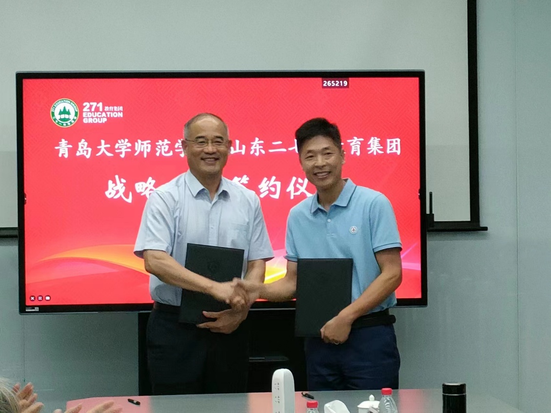 7月15日下午,我院与山东271教育集团在潍坊峡山271教育集团总部签署合作协议,谋划和推进教学研究、教师培训、人才培养合作共同体。