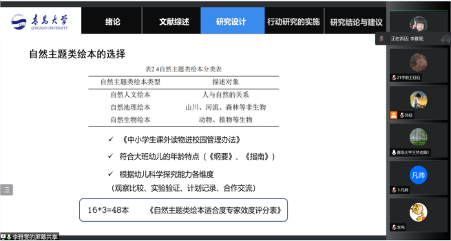 整个答辩会紧张激烈,程序规范,公开透明,严把研究生培养的关口。最终,经预答辩委员会全体会议决议,全体研究生均通过预答辩。本次论文预答辩会的圆满成功充分展示了答辩委员会严谨的态度和学前教育专业硕士研究生良好的学术素养。