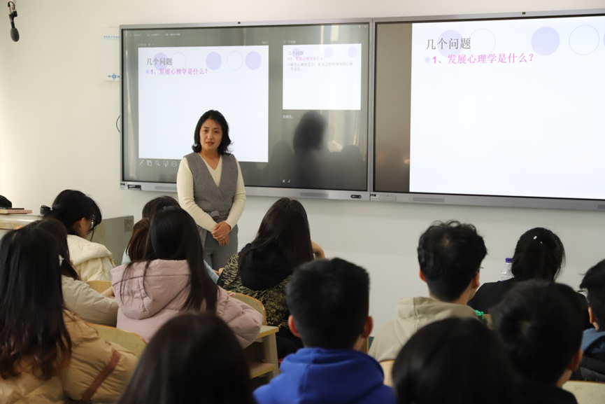 2月20日,春季学期教学周首日,校党委副书记杜方波到师范学院调研,深入课堂听课指导。杜方波在全面听取了学院领导关于新学期初教育教学准备工作后,来到德音楼308教室,听取兰玉萍老师《发展心理学》课堂教学,课间与师生进行了评价反馈,对学院教育教学组织工作给予了充分肯定。教务处副处长李传军、院长助理王忠厚陪同听课。