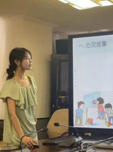 本次活动先由5位参赛同学分别进行十五分钟的无生试讲。参赛同学以认识自我、学会学习、人际交往等心理健康教育的重要主题进行教学展示,教学内容分别为覃书慧《我可以说“不”》、项含钰《不做欺负人的小怪物》、于冯《金牌调解员》、禹小彤《插上想象的翅膀》、张诗寅《人生拍卖会》。