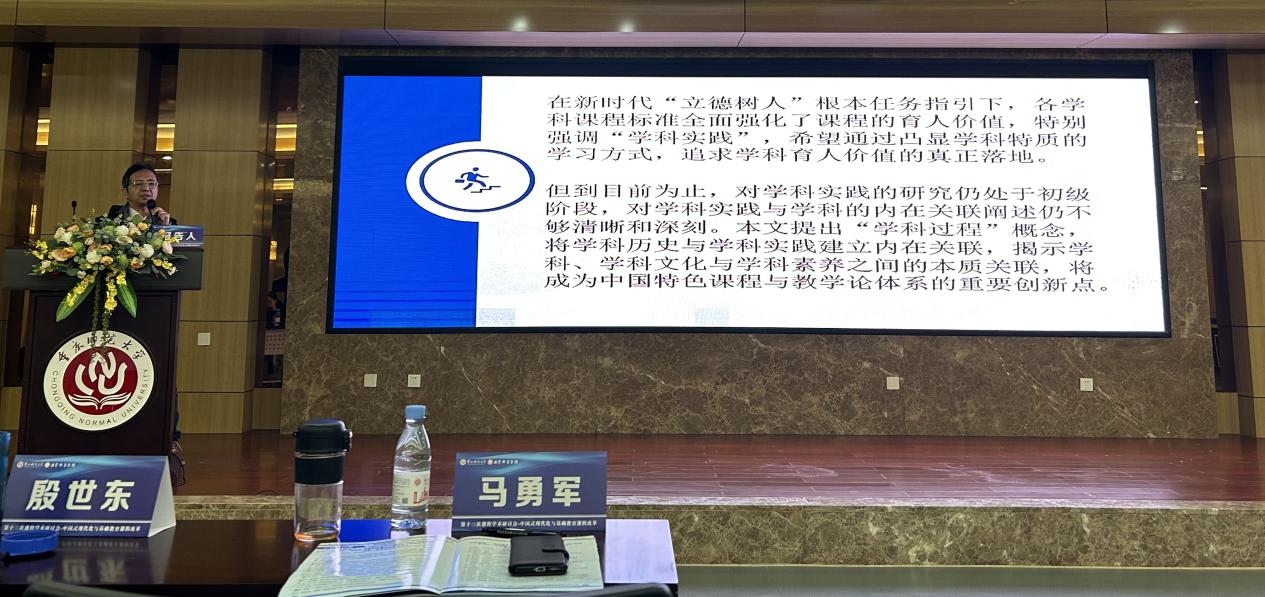 马勇军教授不仅作为主持人,组织了“学科素养导向下的课程与教学实践”分论坛,还进行了“学科过程:内涵、理论价值与实践导向”的论文分享。