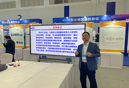 青岛大学师范学院共有四项教育创新成果与会参展,分别是马勇军教授领衔主持的《理实相融的高校专家与中小学教师协同创生教学模式的实践研究》、《五位一体四步递进三重保障:原创案例在全日制教育硕士培养中的实践探索》和王忠厚副教授领衔主持的《1+X精准化课后托管服务课程构建与实施》、《“外圆内方”课程体系及实施模式》。与会期间,马勇军教授还于18号下午在山东馆展区主持了互动工作坊,向来参观的多位教育界同仁介绍与阐释了《理实相融的高校专家与中小学教师协同创生教学模式的实践研究》这一成果,并就一些相关问题进行了深入交流,受到了同仁们的肯定和赞赏。