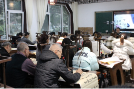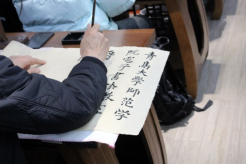3月25日上午,青岛市军休老年大学的学员们走进师范学院,参观大学校园,与大学生共上一堂书法课,我院学工办主任姜彬、团委副书记张宁陪同。
