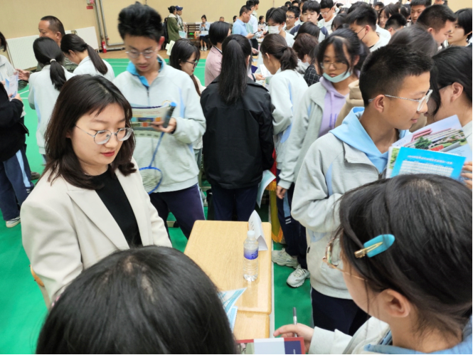三位老师不仅就青岛大学基础教学、院系设置、教师配备、办学方针、科技创新、招生政策和近年来录取及招生情况进行了重点介绍,而且针对家长和学生提出的具体问题,包括具体专业设置、培养方案,专业科目要求,住宿条件等等,做了详尽而细致的回答。同时,盛邀各校优秀学子报考青岛大学,学生和家长纷纷表示此次招生宣传活动使他们收获颇丰,受益匪浅。