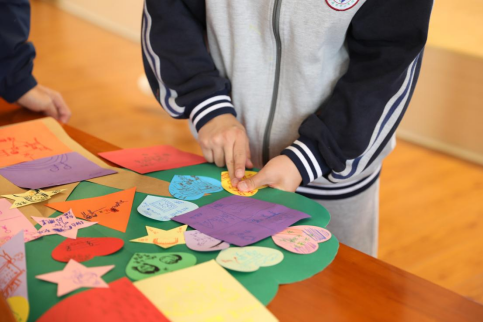 本次活动以表达性艺术治疗为主,旨在通过绘画形式,引导孩子们将内心的情感具象化为一幅幅生动的画作,既促进他们情感的表达,也帮助增进彼此的友谊。孩子们通过一系列绘画活动,让无声的交流在画纸上得以绽放,以“无声胜有声的方式”表达了对朋友的真挚情感和对未来的美好期许。在课堂的尾声,孩子们选出自己最喜欢的一幅作品贴在“心灵树”上,这棵由画作构成的“心灵树”,不仅记录了同学们的成长历程,更象征着他们心灵的成长。