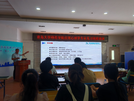 2024年7月8日上午9:00,青岛大学心理学系2022级16名本科生前往青岛市精神卫生中心开展为期2周的暑期见习。青岛市精神卫生中心科教科王圣海主任对学生们进行岗前培训。心理学系主任魏星、发展与教育心理学教研室主任李晓和见习负责老师公雪全程参与此次岗前培训。