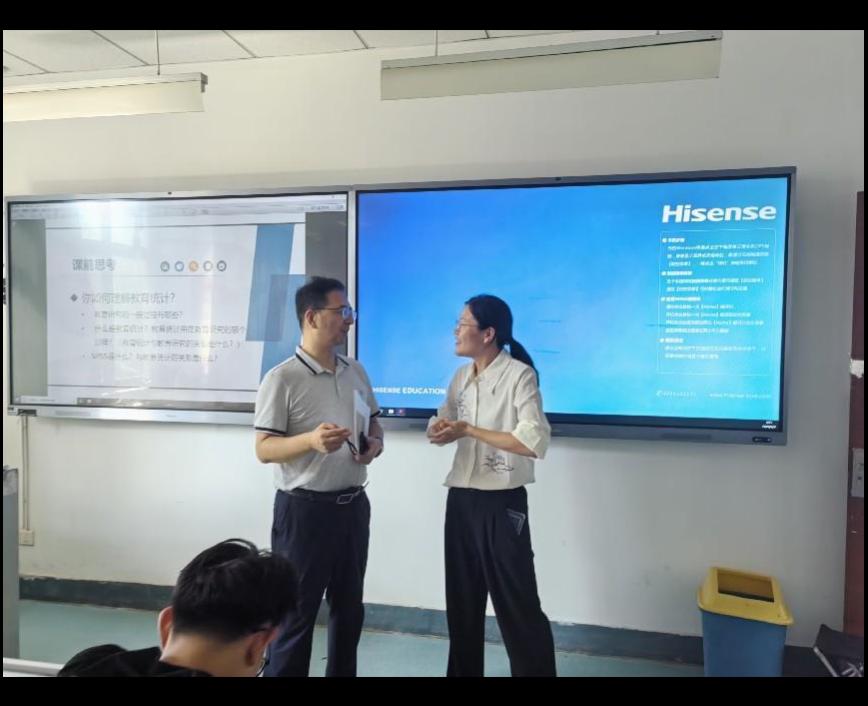 马勇军听取了矫怡程老师的《教育统计学》课程,课后与矫老师交流教学方法、授课经验和课堂互动技巧。