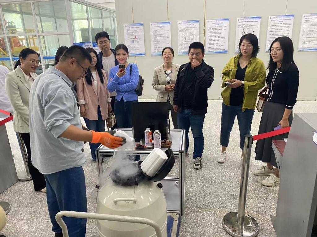 随后,在齐处长的带领下,党员们走进自然资源部天然气水合物重点实验室,近距离观看了可燃冰实验;进入到成果展示馆,了解到青岛市海洋地质所福州路所和蓝谷园区对青岛市中小学海洋科普工作做出的贡献。党员们还感受到了我国海洋科技的飞速发展,对化学、地质、环境勘探、机电工程等多学科交叉融合的研究领域成果表示赞叹。