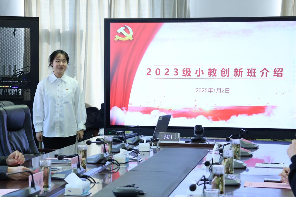 1月2日下午,校党委副书记胡钦晓在德润楼301会议室参加教育科学学院2023级小学教育创新班“师道传薪,学途共耘”主题班会,与同学们探讨师者传道授业解惑的真谛。本次会议由教育科学学院党委书记刘清亮主持。