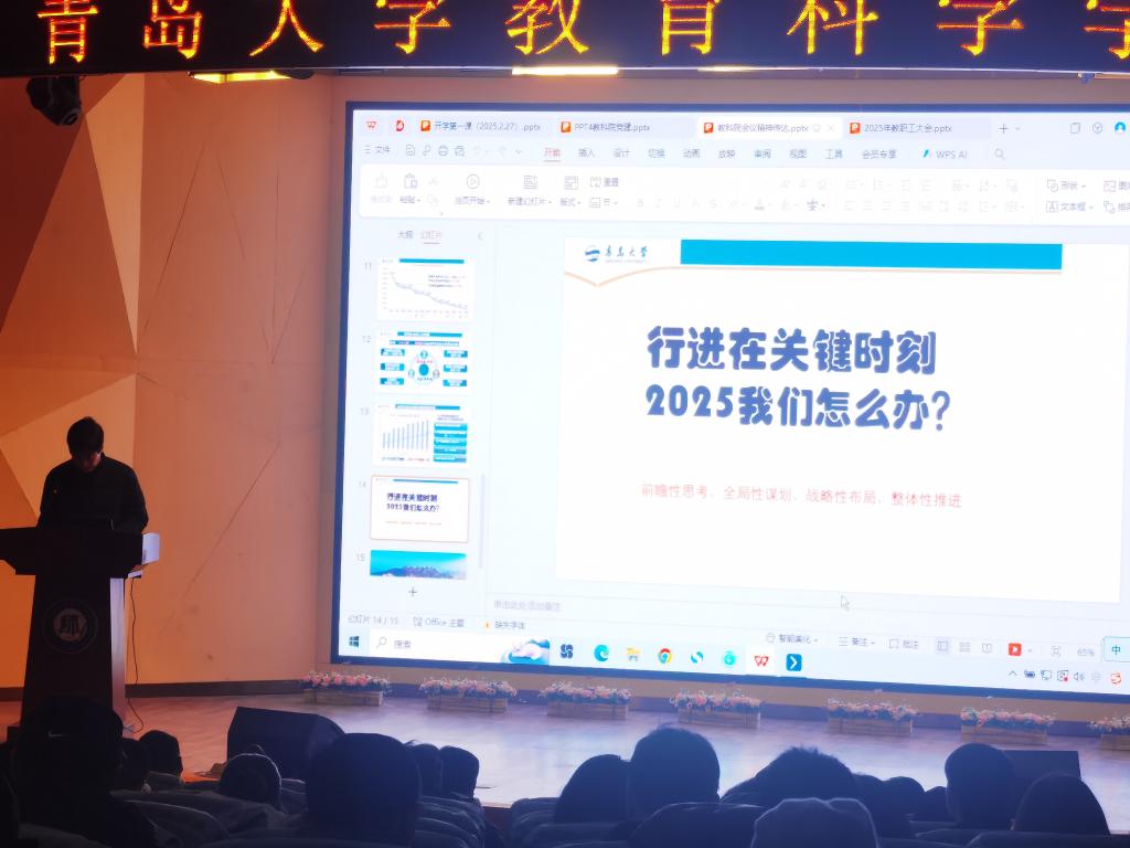最后孙百才院长进行了总结性发言,他要求全体教职工要坚守教育初心,永葆奋斗恒心、增强创新决心,携手推进学院高质量发展。学院将进一步完善激励机制,优化资源配置,为每位教师搭建成长平台。以"开局即决战,起步即冲刺"的姿态,共同书写青岛大学教育科学学院的崭新篇章!