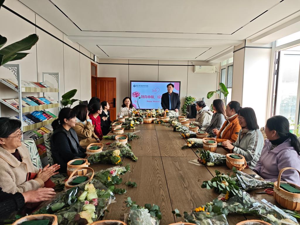 活动伊始,刘清亮书记代表学院向全体女教职工致以节日问候,对大家在教学、科研、管理岗位上的辛勤付出表示衷心感谢,并强调学院将持续关注教职工需求,搭建多元文化平台,营造和谐奋进的育人氛围。随后,专业花艺师现场讲解插花艺术的历史渊源与创作技巧,从花材选择、色彩搭配到造型设计进行细致指导,带领教职工们开启了一场沉浸式艺术体验。