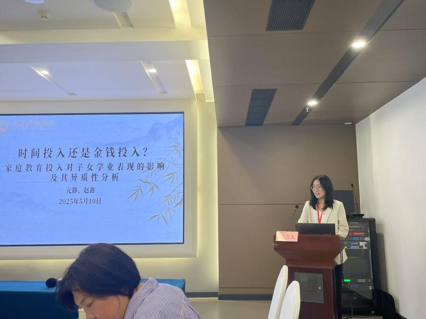 5月10日下午,吕慈仙教授和研究生王梓涵、崔皓然、张轲骏在专题会场五进行论文分享,王梓涵汇报了《“望子成龙”——亲子教育期望偏差对青少年社会与情感能力的影响研究》;元静副教授汇报了《时间投入还是金钱投入——家庭教育投入对子女学业表现的影响及其异质性分析》,从独特的视角探讨了家庭教育投入的关键因素。北京大学教育经济研究所副所长马莉萍长聘副教授进行了细致点评。