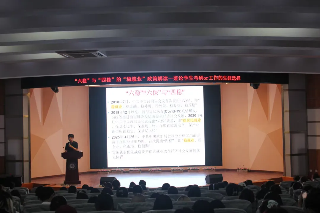 6月19日15点,我院于学术报告厅举办《“六稳”与 “四稳”的“稳就业”政策解读——兼论学生考研or工作的生涯选择》讲座,教育科学学院院长孙百才主讲,院党委副书记夏锡梅出席,2023级全体学生参加,讲座由学院学工办主任姜彬主持。