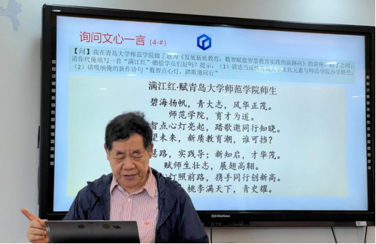 最后,祝智庭教授以一首“满江红”表达了对青岛大学师范学院师生的期望和祝福。他强调,教育数字化转型的价值在于技术、设计和文化融合所创造的智慧,而新质教育承载着培养数智时代高适应素质人才的重要使命。此次讲座不仅是祝教授对数智赋能教育的深刻洞察,也是对未来教育发展的积极展望。他的见解为老师和同学们提供了宝贵的指导,也为教育领域的创新与变革提供了明确的方向。