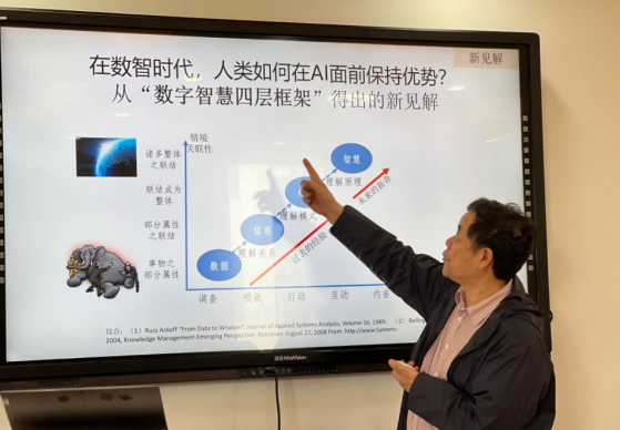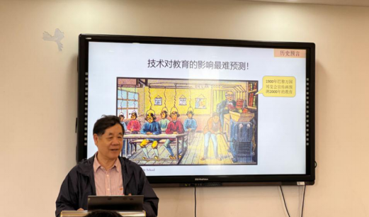 6月5日上午,我院在德润楼201举办菁师讲坛30讲。邀请华东师范大学教授、博士生导师祝智庭教授做“发展新质教育:数智赋能智慧教育实践的新路向”专题讲座。讲座由师范学院教育技术系主任杨进中主持,教育硕士研究生和本科生积极参加。