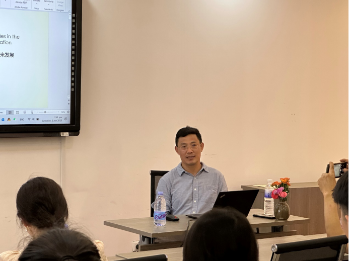 王其云教授首先介绍了南洋理工大学的QS排名、院系和研究机构、以及国立教育学院的概况。然后从自己的研究课题入手,聚焦数字化转型。他简要介绍了什么是数字化转型、数字化转型在教育领域的发展趋势、预测教学的未来发展以及数字化转型的优势和关注热点。