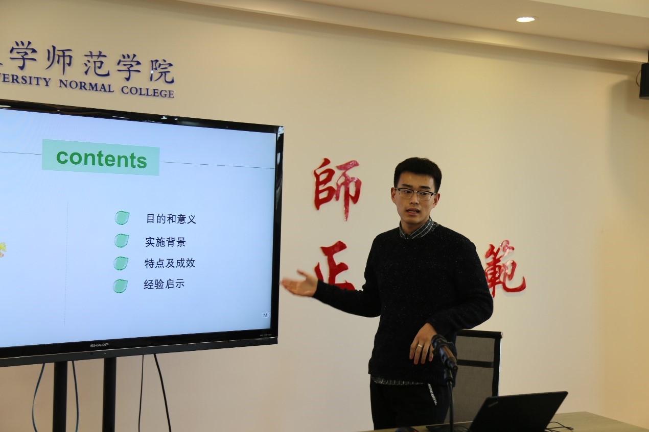 师范学院教育硕士教育中心主任夏锡梅首先宣读学术成果获奖名单,接下来在学术交流环节,四名获奖代表进行了汇报演讲。孙盘龙和吕伟妮分别就自己的获奖论文进行了汇报交流,在全国教学技能大赛中获奖的迟彩玲和张乔也分别对自己的获奖课题进行了模拟试讲,她们在试讲中表现出来的从容、自信赢得了师生的一致好评。