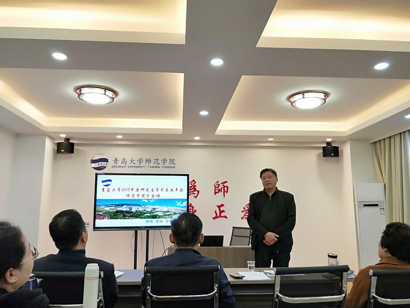 为提高本院研究生学术交流与科研创新能力,持续高效的开展研究生学术工作,12月20日下午,我院在德润楼201举行了2018年青岛大学研究生学术交流年会。参加交流会的有师范学院院长李福华、副院长马勇军、党委副书记王成海、部分专业教师以及师范学院全体在校研究生。交流会由副院长马勇军主持。