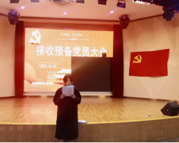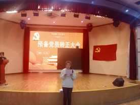 12月23日下午,师范学院学生党支部于学术报告厅召开接收预备党员大会及预备党员转正大会,大会由学生党支部宣传委员张宁主持,学生党支部全体党员及预备党员参加本次会议。
