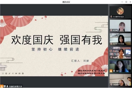 为庆祝中华人民共和国成立73周年,深刻体悟新时代党和国家事业发展取得的伟大成就,以实际行动迎接党的二十大胜利召开,10月1日晚六点,我院本科生第一、第二党支部联合举办“欢度国庆,强国有我”主题党日活动。活动由本科生第一党支部书记张宁主持,支部师生党员及入党积极分子线上参与活动。