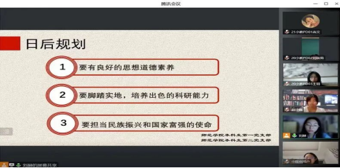 刘赫从自身经验、日后规划等方面进行阐述保研至北京师范大学的经验。她提出,作为一名新时代的师范生,我们应深刻认识教育的重要作用,努力提高综合素质,勤奋学习、锤炼身心,努力做具有过硬本领和高尚品格的人民教师,为党和国家的教育事业贡献自己的力量。