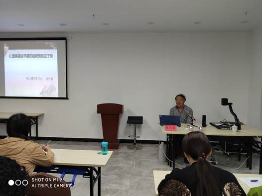 镇江市心理卫生中心张长春老师就心理疾病的早期识别和预防及干预做了讲座。张老师先带领大家从多个角度来正确理解心理疾病,又就诱发心理疾病的因素、常见心理疾病及如何预防等方面给出建议。随后还就精神疾病及精神疾病分类干预两大方面做了讲解,给大家分享了很多有效建议。