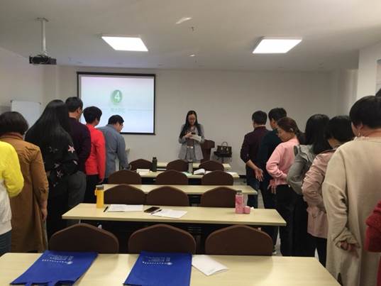 陈静老师就镇江市中小学心理健康教育实践与延伸做了交流。陈静老师从一支队伍、一个认证、两个中心、两大评比、三大抓手、三大成长及四个思考这些方面做了详细介绍,图文并茂,大家无不感叹镇江市中小学心理工作之细致用心,的的确确、切切实实将心理工作落到实处,做到实处。最后,陈静老师还带领大家做了数字传递游戏,在轻松愉快中结束了此次交流。