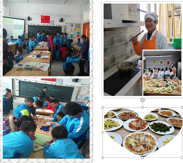 此外,动手不仅仅在“i探索”中得以体现,在家政课中亦是如此。在家政课,孩子会学习茶道、整理房间,甚至包括使用搓衣板洗衣服,当然还有基本的生活能力——做饭!提起做饭,在很多的学校里,会做一道菜或许是我们综合实践活动中的一种体现,而在这里,在他们的家政课上,孩子所学会的,可就不止是一道菜,而是一桌菜了!